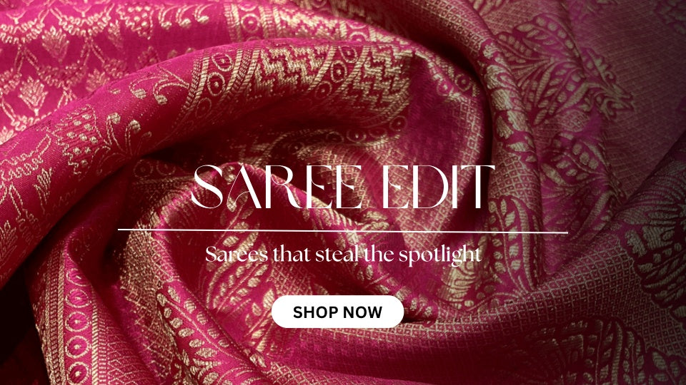 Rani Pink Saree with Heavy Floral Border and Designer Blouse