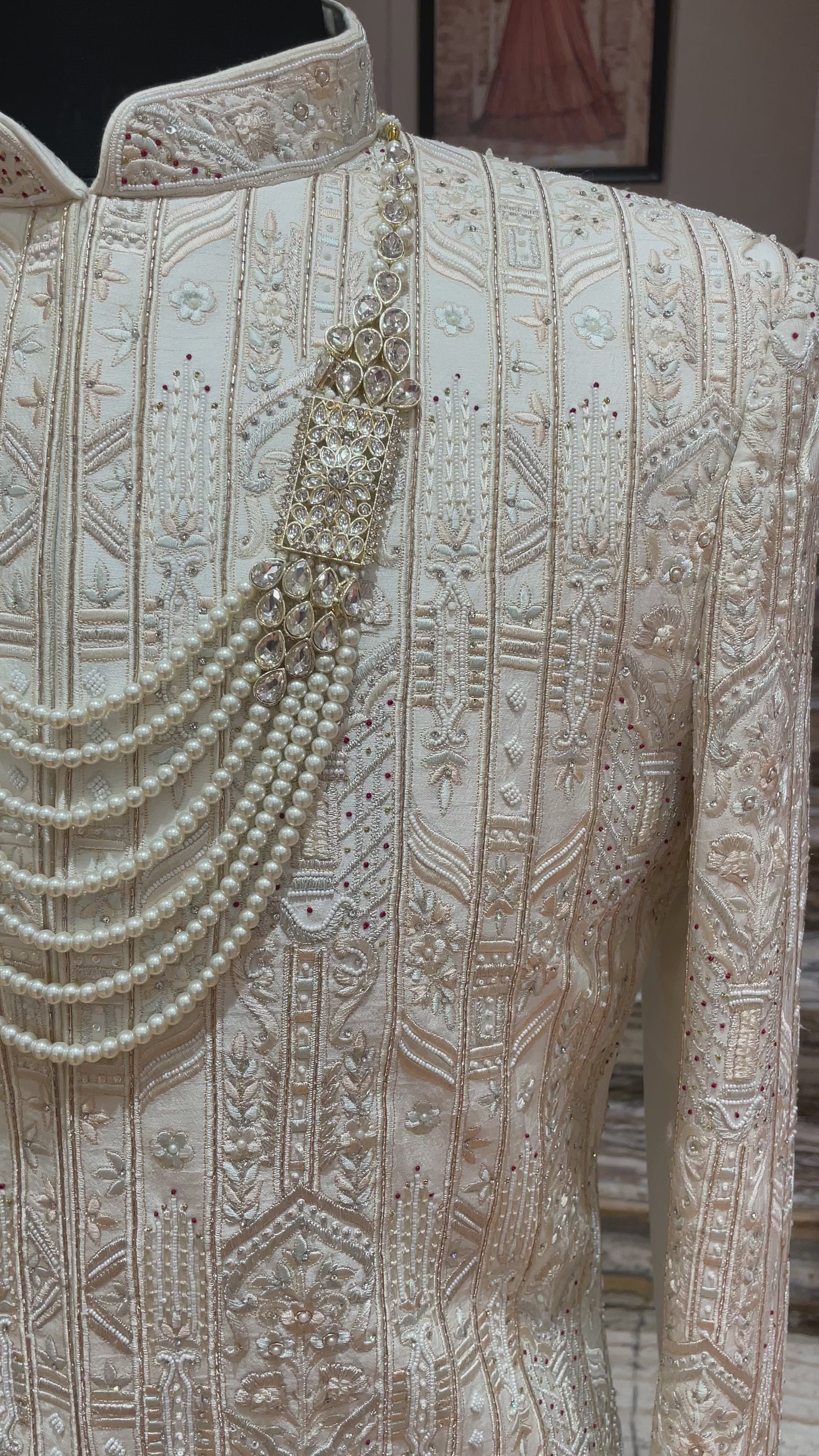 Ivory embroidered Sherwani with classic pearl detailing
