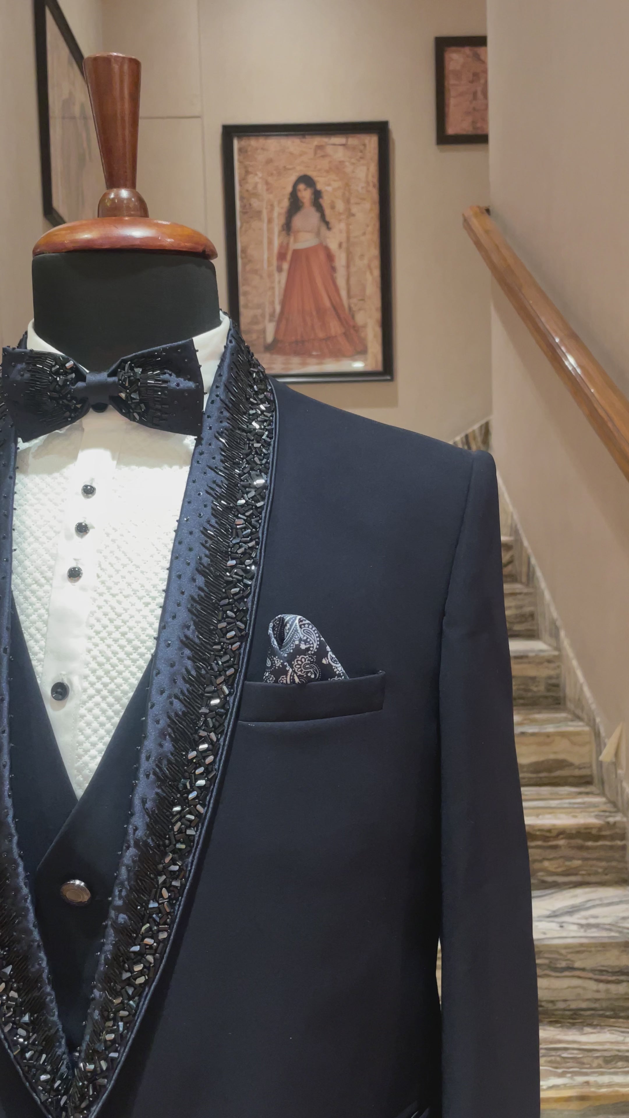 Black tuxedo with collar embroidery and embroidery workBlack tuxedo with collar embroidery and embroidery work