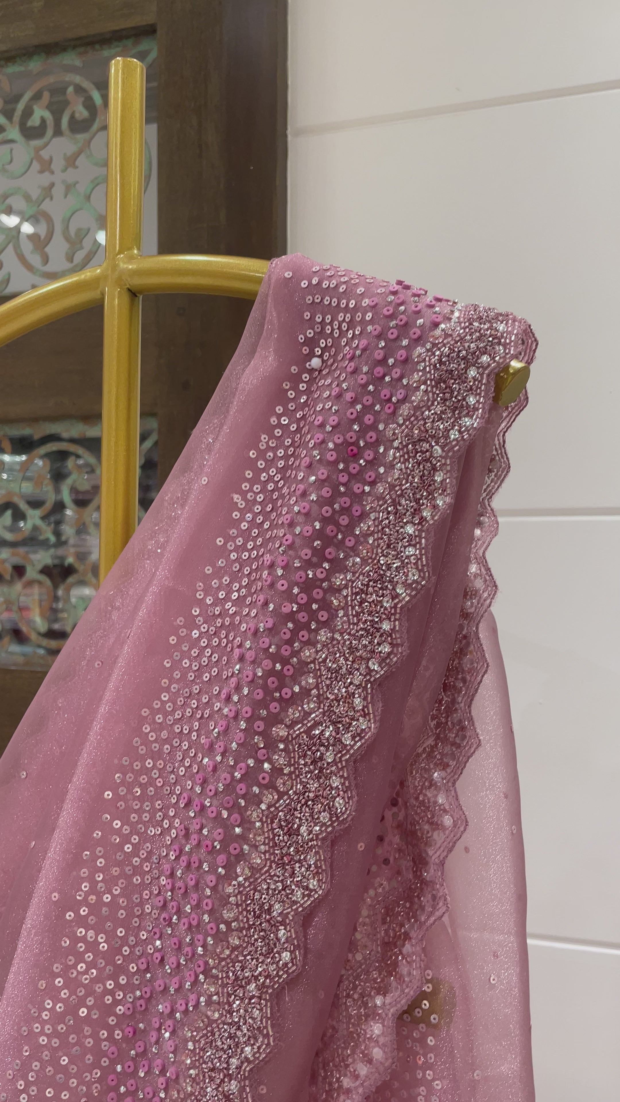 Sold outPink tissue organza saree with sequin and cutdana embellishments