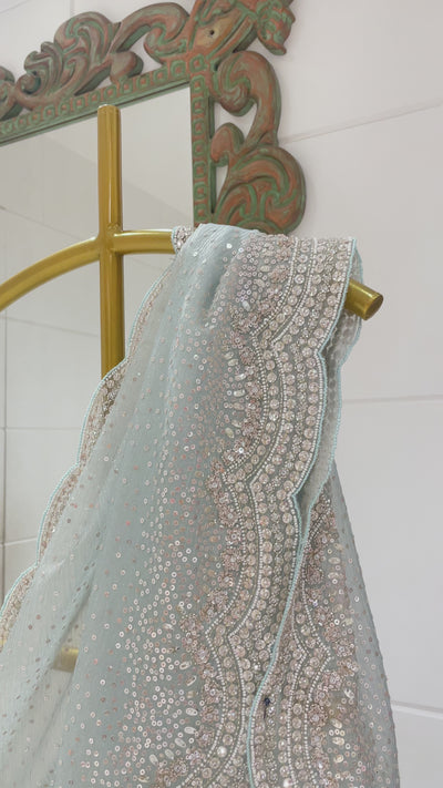 Pastel blue tissue organza saree with scallop border Sale priceRs. 16,995.00