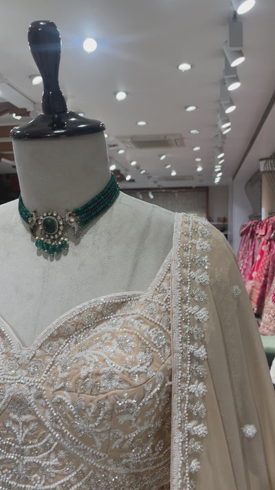 - Embellishments: Lavishly adorned with sequins and intricate cutdana work, adding a radiant sparkle to the ensemble.