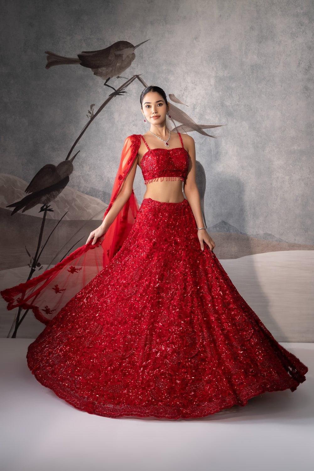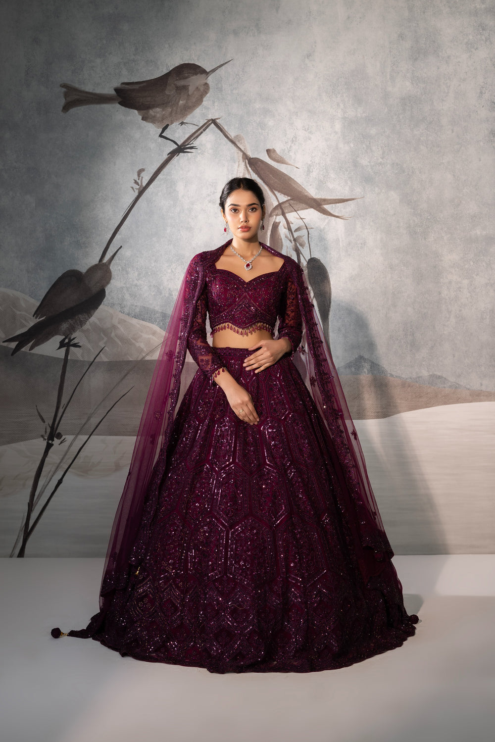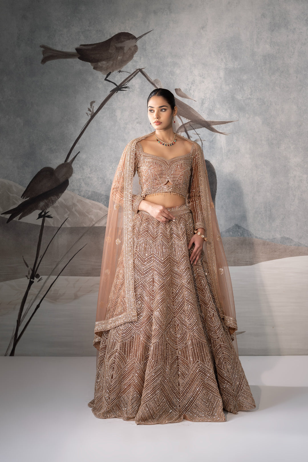 BROWN SEQUENCE EMBELLISHED LEHENGA