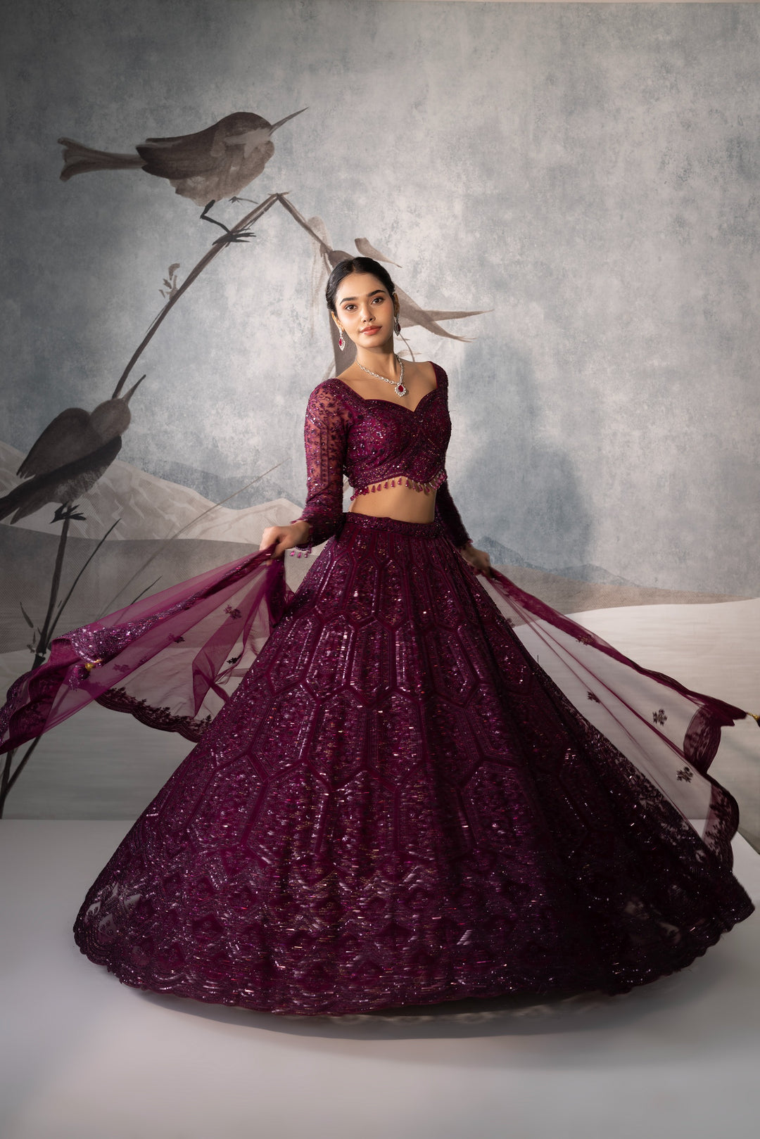 Magenta Floral Embroidered Party Wear Lehenga with Dupatta