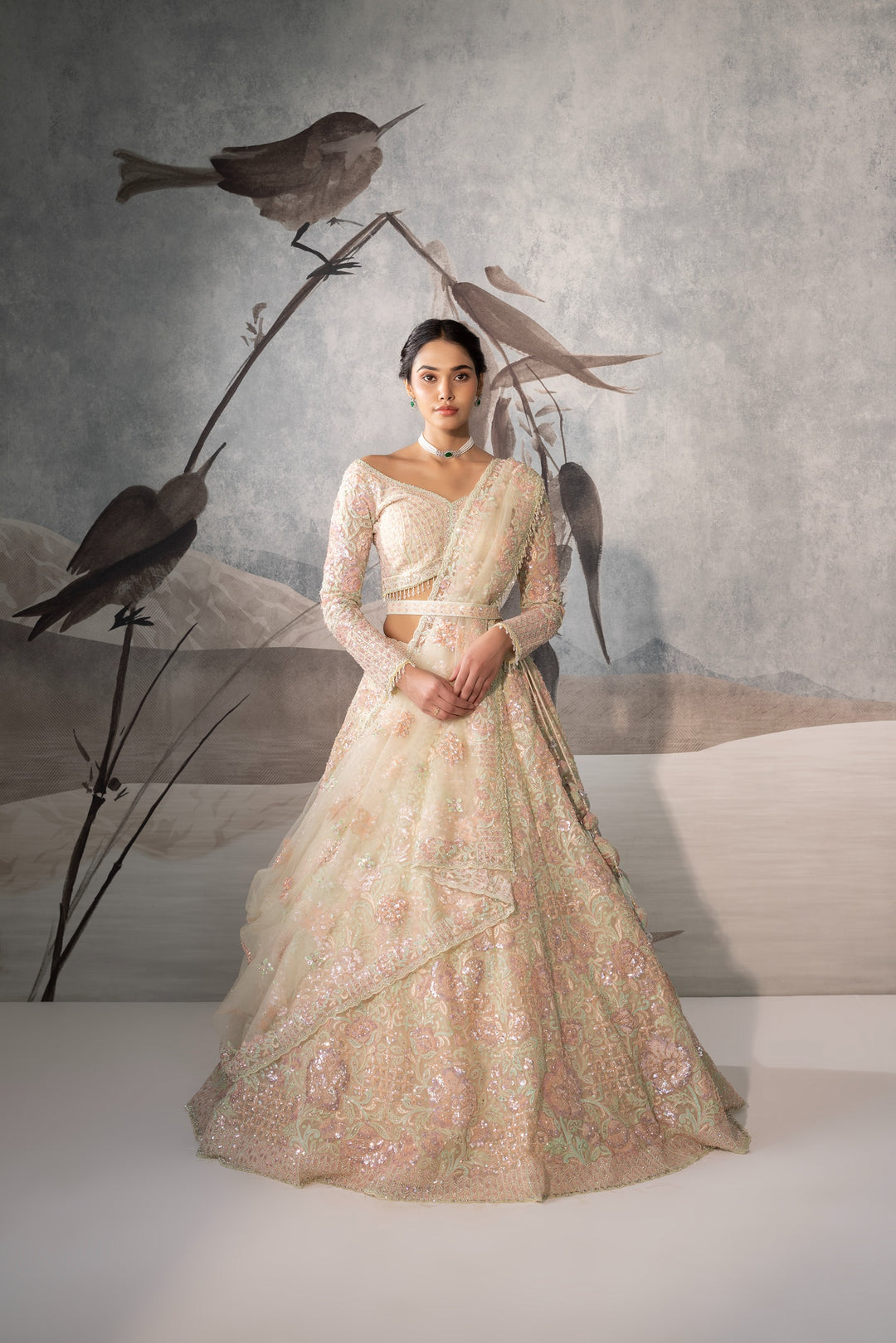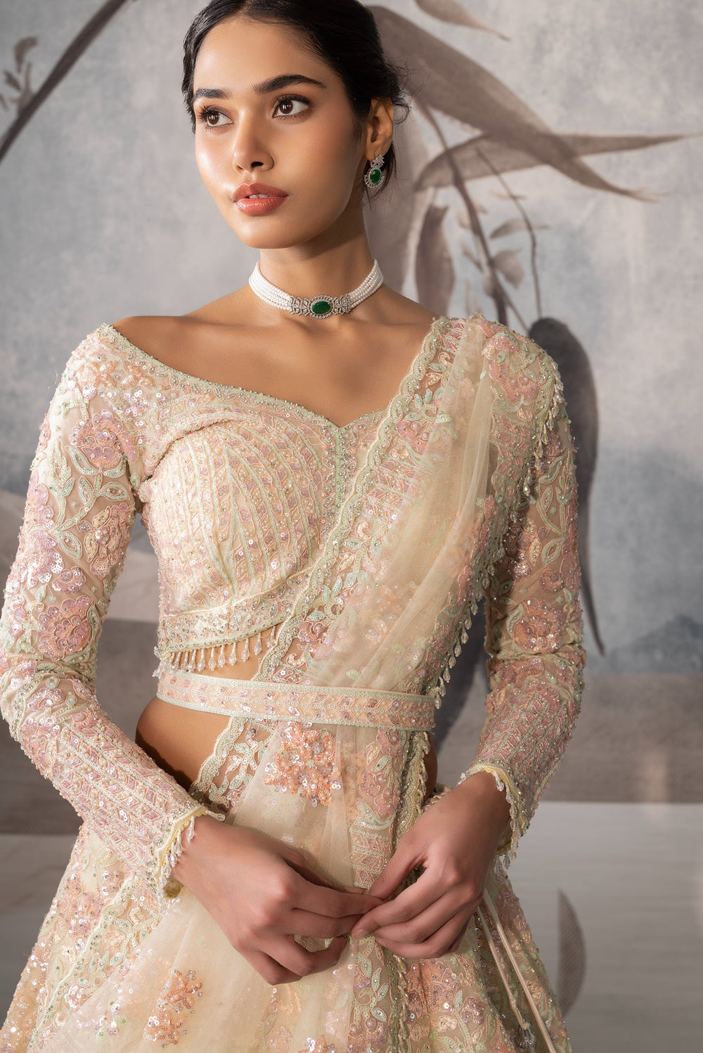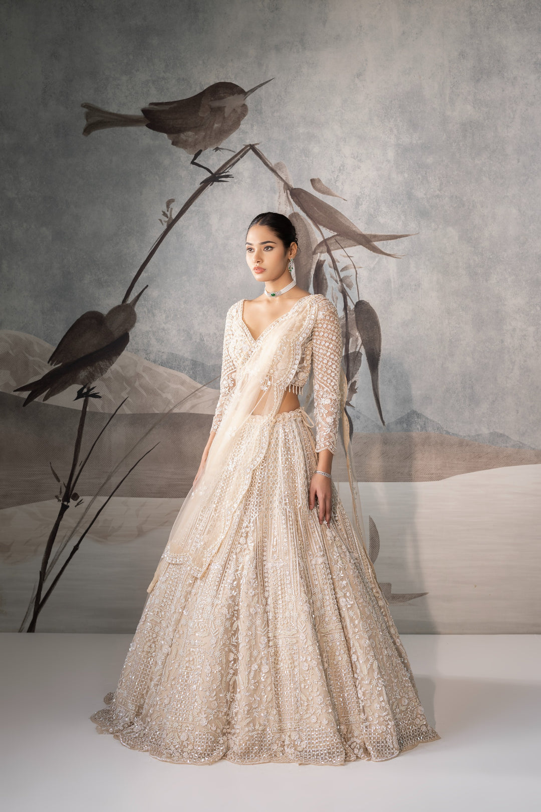 Beige Embroidered Party Wear Lehenga with Sequins Work
