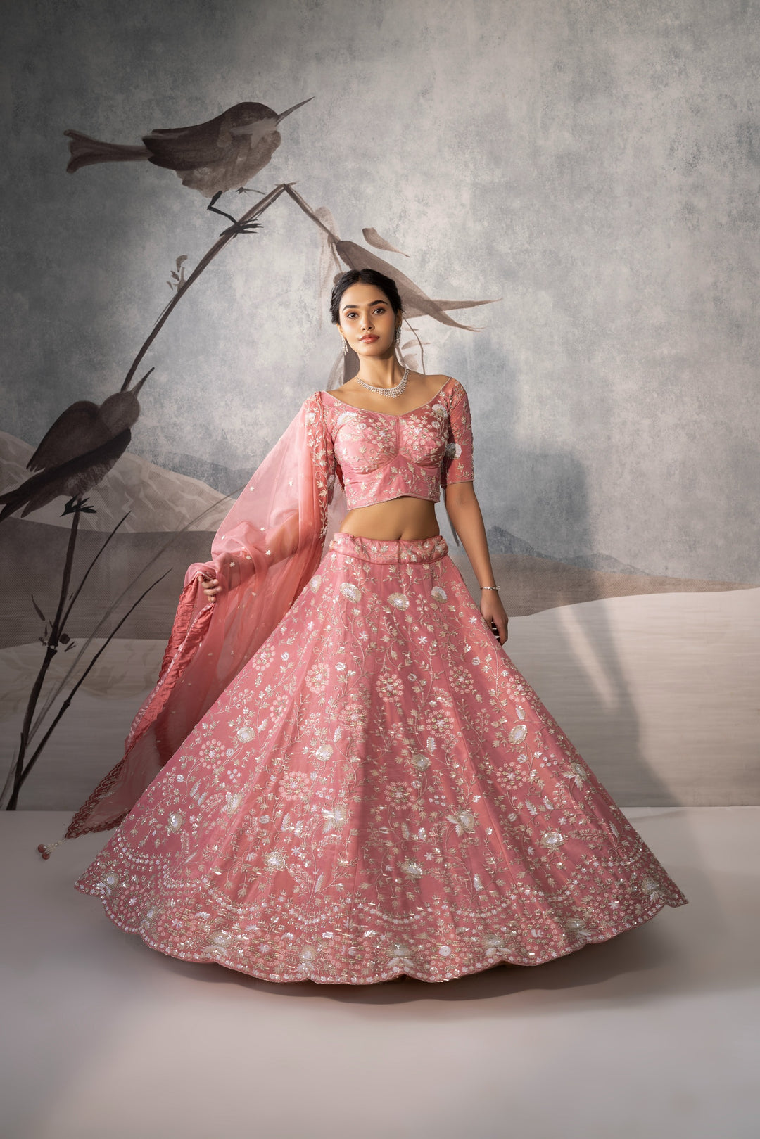Designer Pink Bridal Lehenga with Heavy Embroidery – Wedding Ceremony Outfit