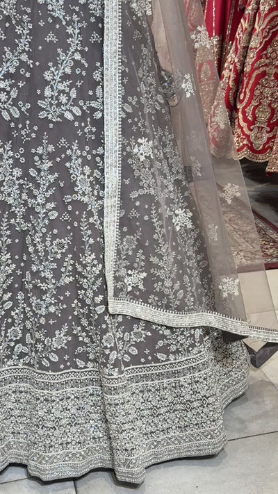 Sophisticated dusty pink lehenga adorned with intricate embroidery and subtle embellishments