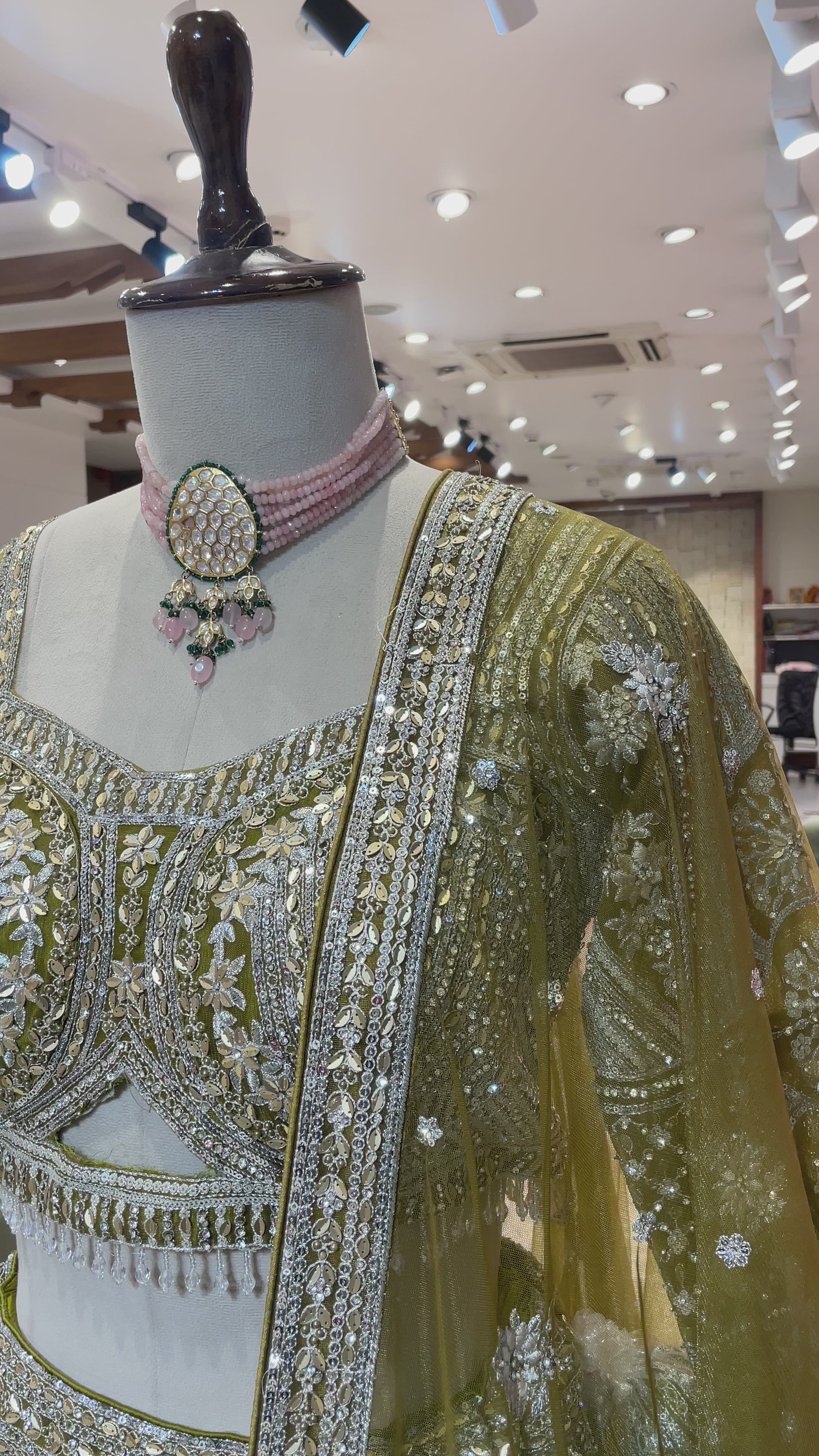 This green lehenga is the epitome of timeless elegance, perfect for making a grand statement at any celebration.