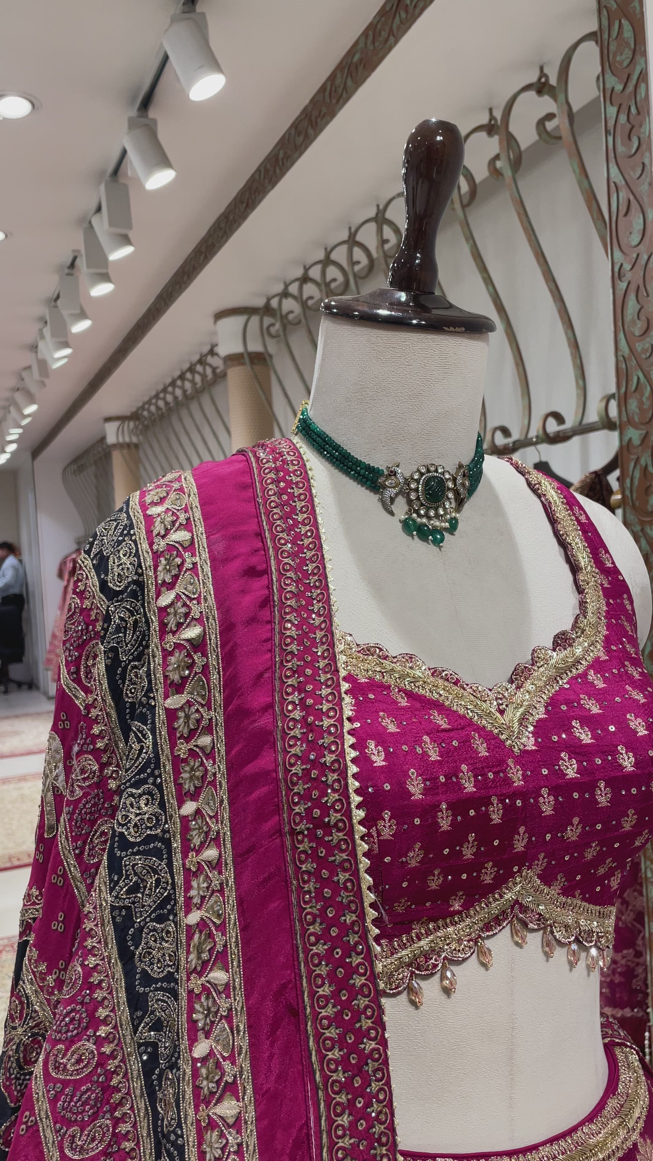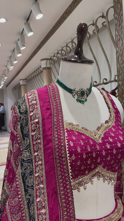 This magenta Banarasi silk lehenga is a timeless piece, perfect for making a statement at any grand event.