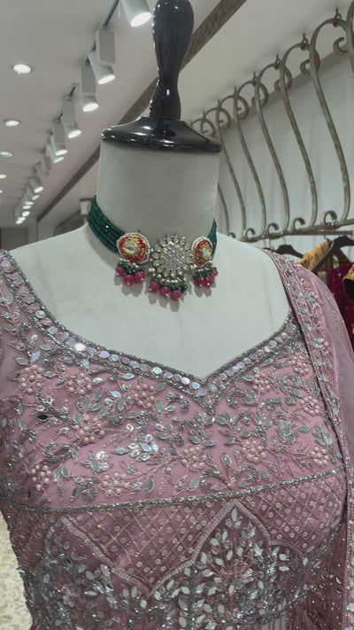 - Embellishments: Stunning mirrorwork detailing throughout the lehenga, reflecting light and adding a touch of sparkle.