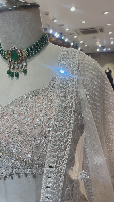 - Dupatta: Sheer net dupatta featuring embroidered borders for a refined look.