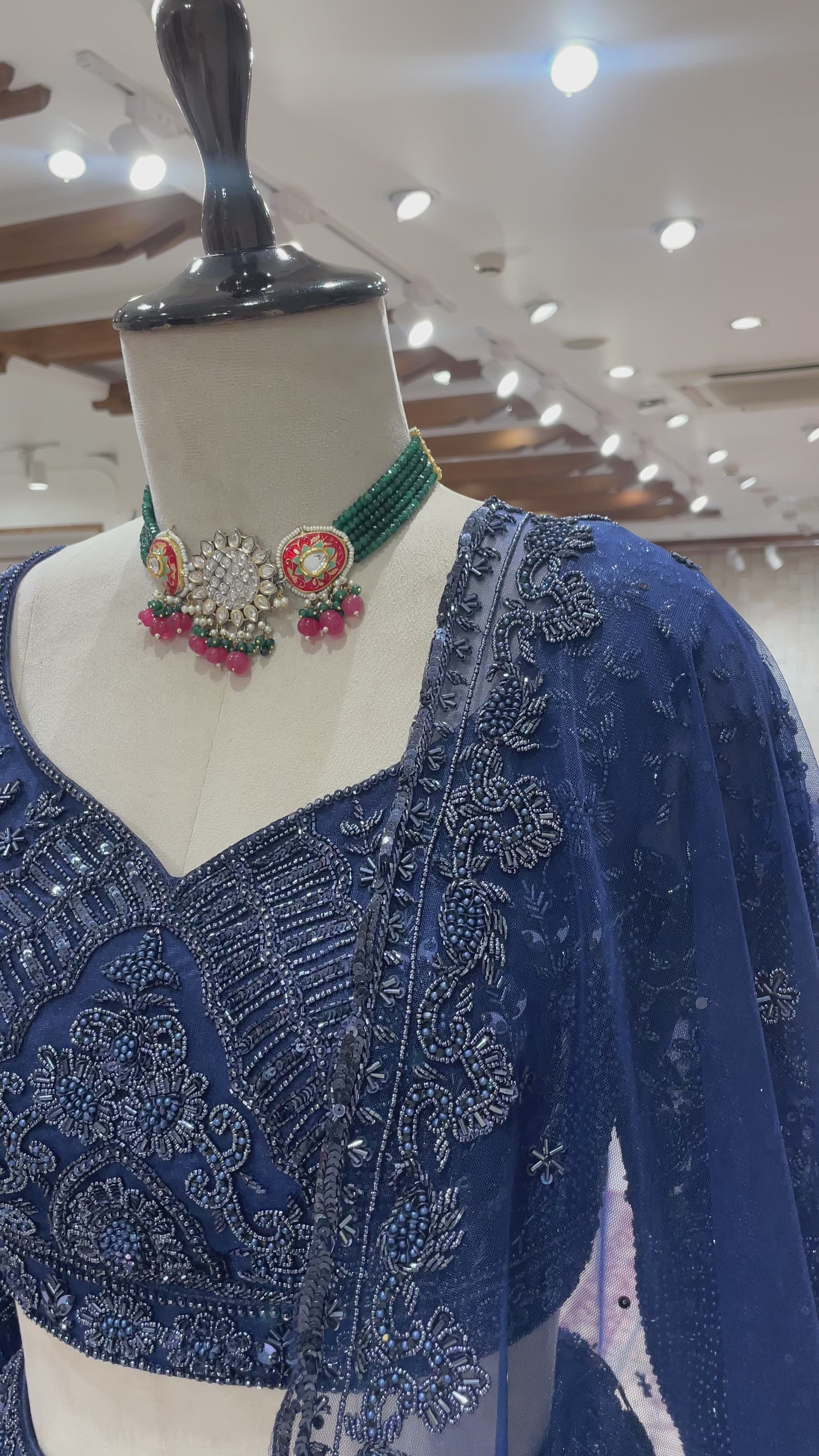 Royal blue lehenga with sequins cutdana and pot embroidery