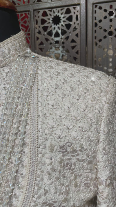 Ivory layered sherwani with threadwork and embellishment