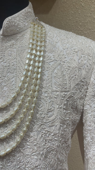 Silk Ivory sherwani with bead embroidered