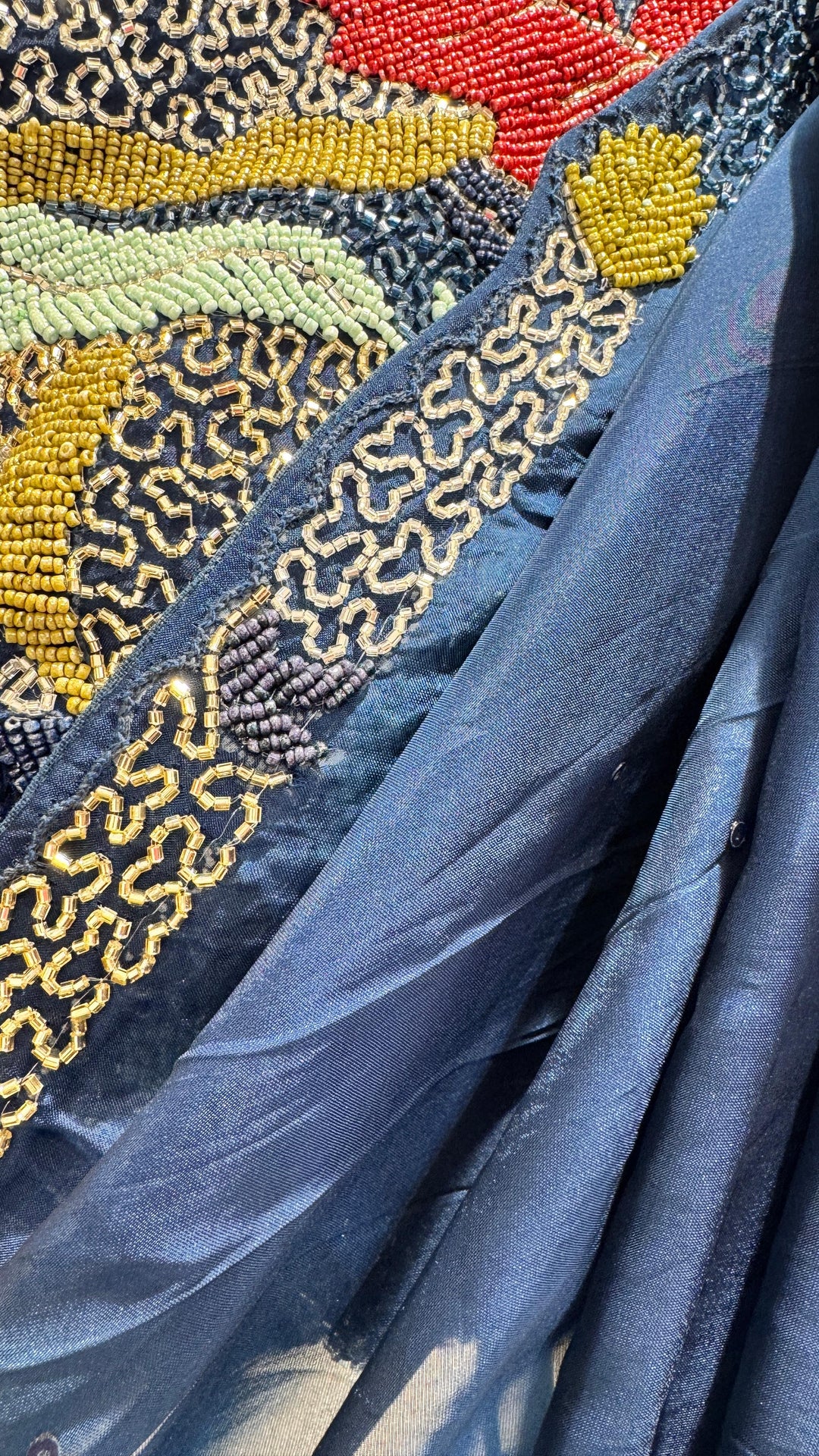 Ideal for cocktail evenings, wedding receptions, or festive celebrations, this saree brings together color and sparkle in a look that’s effortlessly chic and timeless.